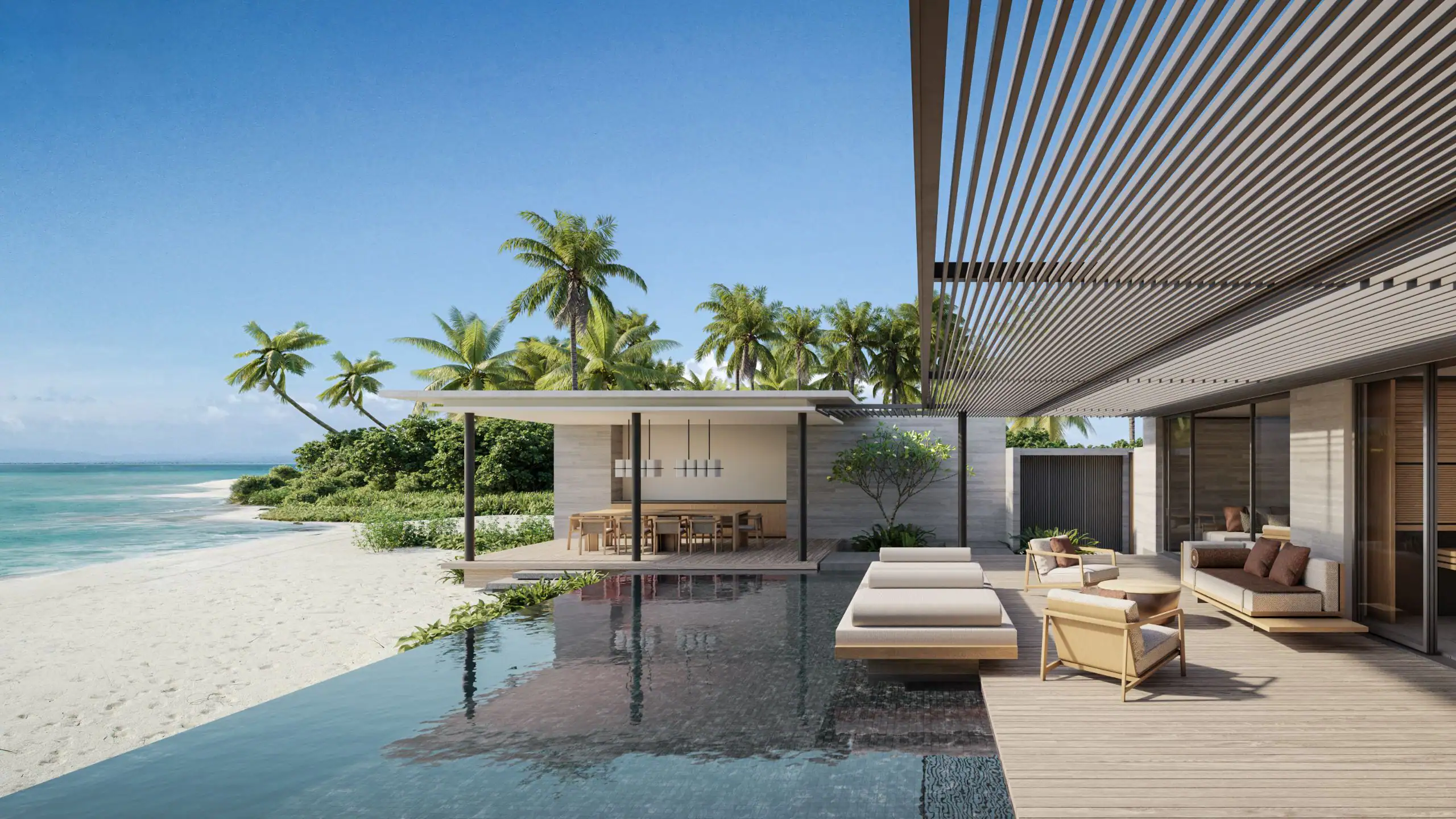 (395 Sqm) Boduge Residence is an exclusive retreat designed for families or friends. Offering a kitchenette, dining and living area with a private pool and BBQ space. A seamless connection to a neighboring villa creates a 3-bedroom sanctuary.