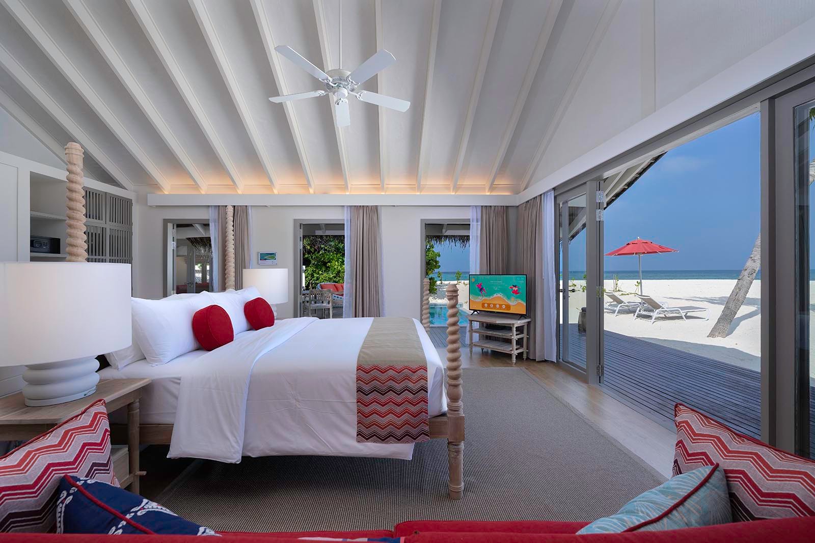 (Max 4 Adults) (137 Sqm) Beach bunnies of all ages will adore these two-bedroom, two-bathroom villas. Splash around in the shallows, soak up the sun on your deck, then the kids can nap inside while you have a cup of tea with a view of the sea. By bedtime, it’ll be smiles all around.