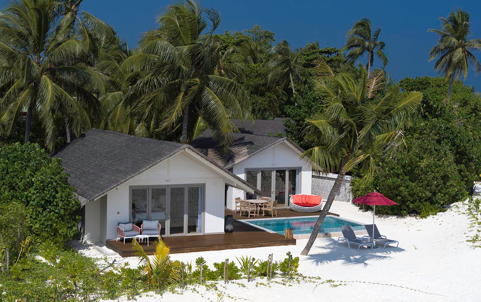 (Max 3 Adults) (78 Sqm) Chill in your private pool with the beach at your feet and sea breezes in your hair. Hedges of fragrant shrubs and tropical flowers ensure total privacy, so you can relish the freedom of hopping between pool and deck. You’ve found your happy place.