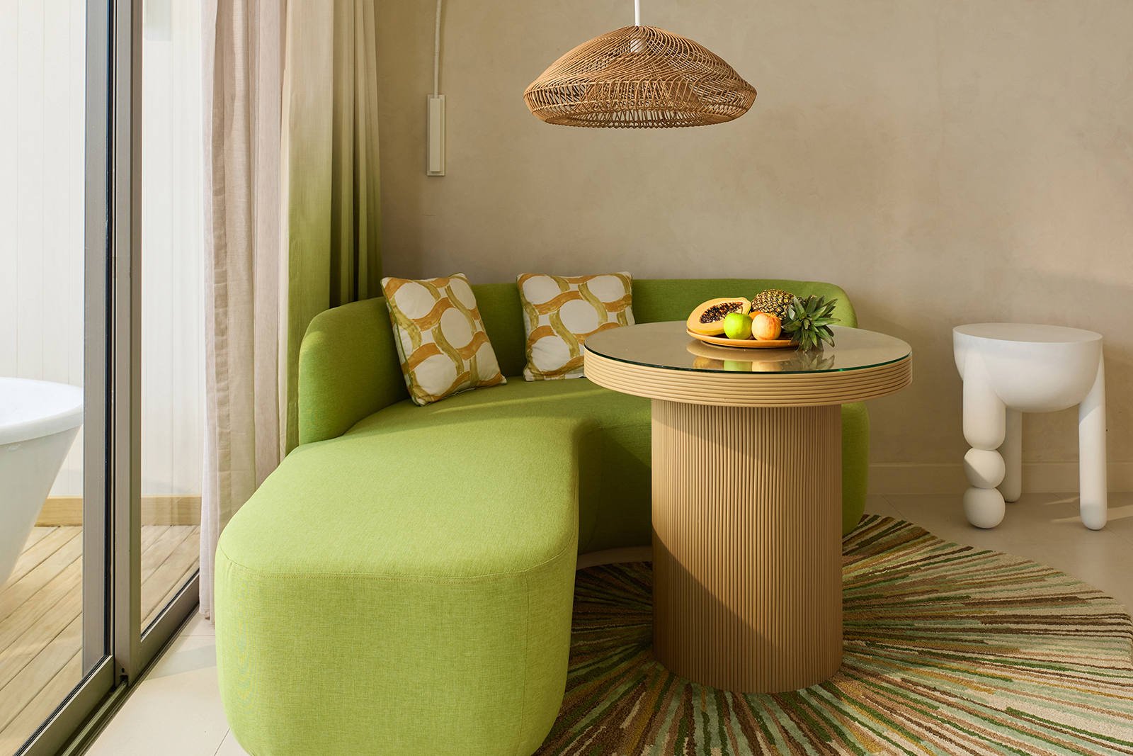 (Max 2 Adults) (49 Sqm) Discover serenity in our Mirage Panoramic Room, spanning 39 square metres with a 10 sqm. terrace and outdoor bathtub offering breathtaking views. Ideal for families seeking spacious comfort with a comfortable King bed, bunk beds for up to two children.