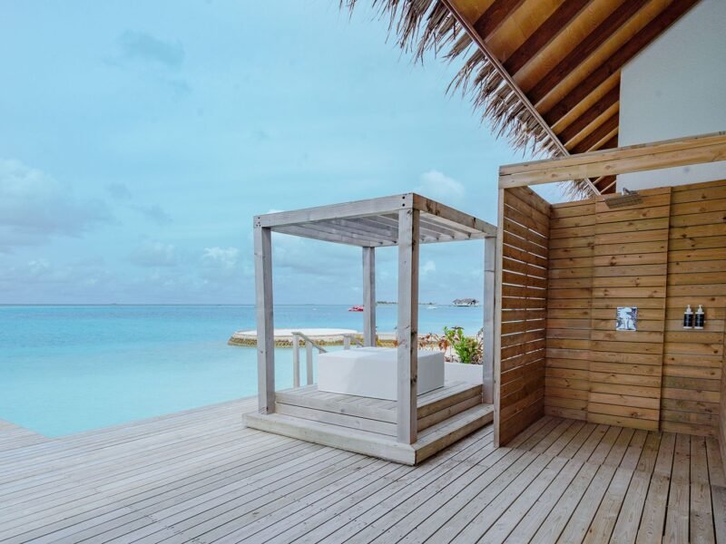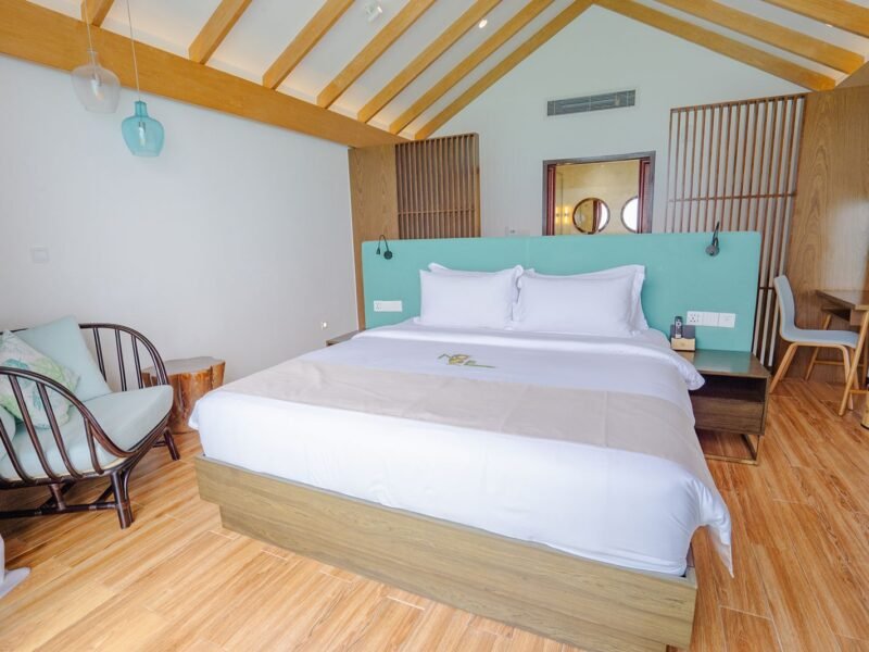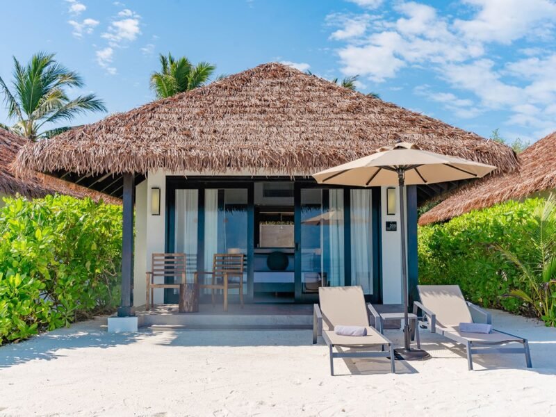(Max 3 Adults) (62 Sqm) Wake up to uninterrupted views of the Vaavu Atoll from your doorstep. Located along a soft white sandy beach in the island’s most sheltered area, this villa offers direct access to the house reef for snorkelling or simply enjoying the vibrant marine life near the shore