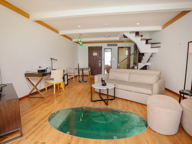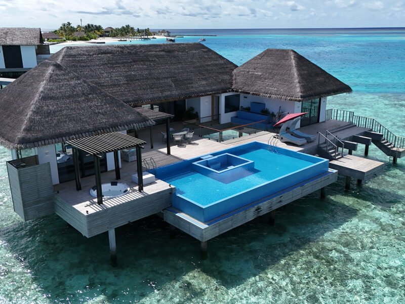 (Max 6 Adults) (370 Sqm) Suspended above the turquoise waters of the Vaavu Atoll, the Grand Atlantis is the largest overwater villa on the island, offering uninterrupted views of vibrant marine life and endless horizons.