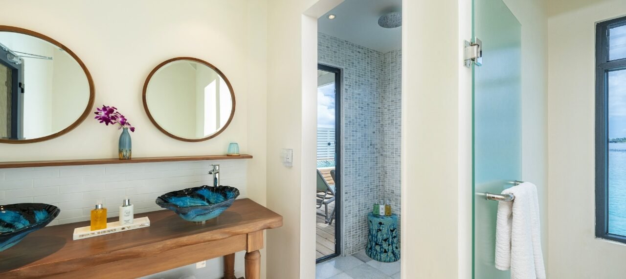 (Max 2 Adults) (87 Sqm) Perched gracefully above the glistening blue waters of Helengeli, step inside and be embraced by sunlit interiors, adorned with soothing white tones and a captivating touch of tropical colors.