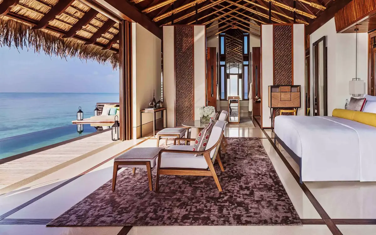 (Max 4 Adults) (202 Sqm) Water surrounds you in our six iconic over-water villas in the Maldives. Your stunning private infinity pool floats above the turquoise lagoon, with a deck where you can indulge in a spot of sunbathing.